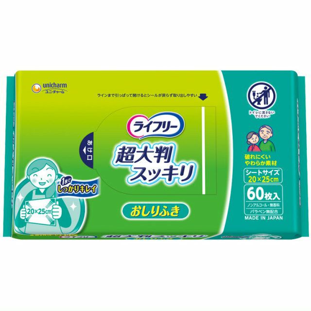 【ライフリー おしりふき 超大判スッキリ 60枚入】 kmt1005 日用雑貨 排泄関連