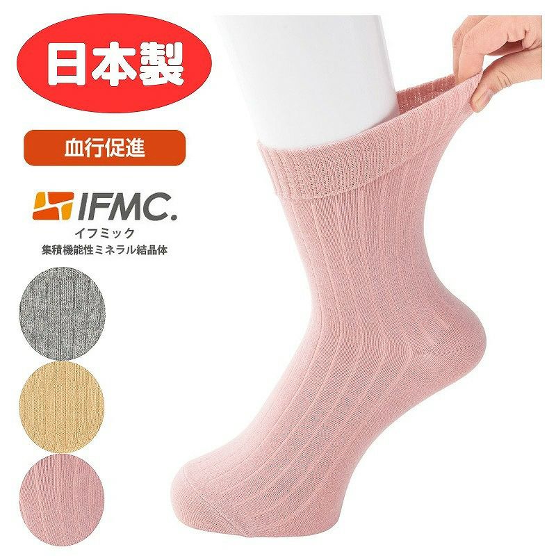 快適な日常生活をお過ごしいただけるためにお役立ていただける商品ですやさしい工夫のアイテムですこんなお悩みありませんか・・?施設の空調が効きすぎて夏でも寒い・・年々、冷えを感じやすくなったどれだけ重ね着をしても体の芯は温まらないそんなときは「着るサプ」!使い続けることで効果を実感!温泉の研究から作った、血行促進効果ができる「着るサプ」。温泉の効果に着眼して開発した血行促進素材を繊維に加工させて作りました。着用し続けることで効果を実感してみてください。1年を通して重宝する綿混タイプ。●品名/着るサプIFMC.足首ゆったり名前の書けるソックス●色/ピンク・ベージュ・グレー●サイズ/22~24cm●素材/綿・アクリル・ポリエステル・ポリウレタン●生産国/日本製●仕様/名前書きスペース 足首ゆったり 抗菌防臭 足首まわりゆったり25cm●説明/1年を通して重宝する綿混タイプ。IFMC.(イフミック:集積機能性ミネラル結晶体)は(株)テイコク製薬社が温泉療法に着眼して製造したナノメーターレベルの非常に微小なミネラルの結晶体です。 数種類の鉱物を組み合わせて鉄分の多い温泉水に一定時間浸漬し、その溶出液を特殊処理して抽出した物質です。身体に近接させることで血管から一酸化窒素(NO)が拡散し、血管が拡張することによる血行促進効果が期待できます。