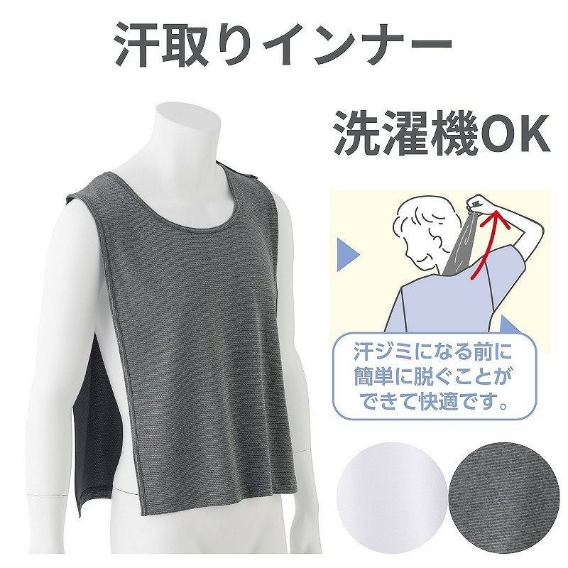 快適な日常生活をお過ごしいただけるためにお役立ていただける商品です着やすさとやさしい工夫のアイテムです服を着たまま脱げる汗取りインナー。長時間背もたれに接している際の蒸れ等にも最適です。●品名/丸首脇縫製無シャツ●色/ホワイト・グレー●サイズ/M~L・L~LL●素材/ポリエステル55%・ポリプロピレン45%●生産国/中国製●仕様/洗濯機OK(ネット使用)●説明/服を着たまま脱げる汗取りインナー。長時間背もたれに接している際の蒸れ等にも最適です。