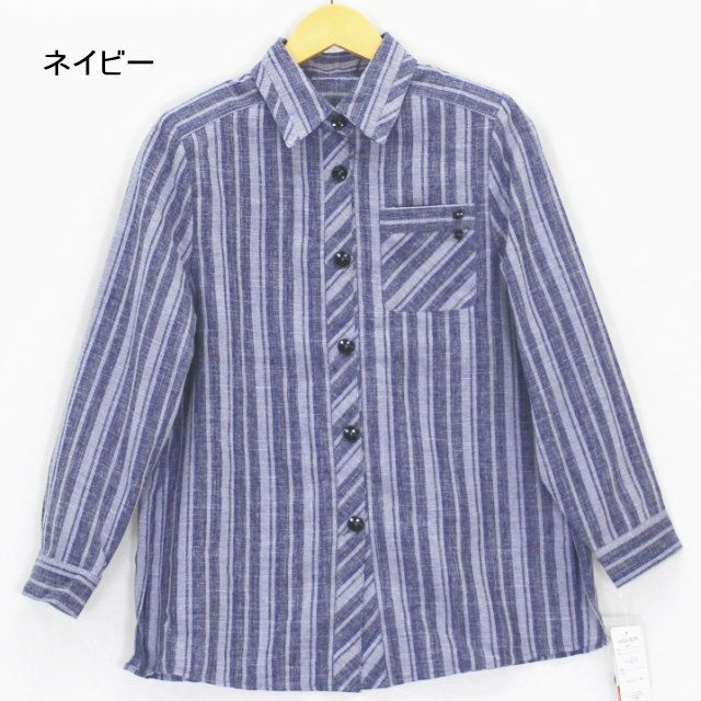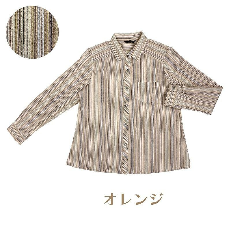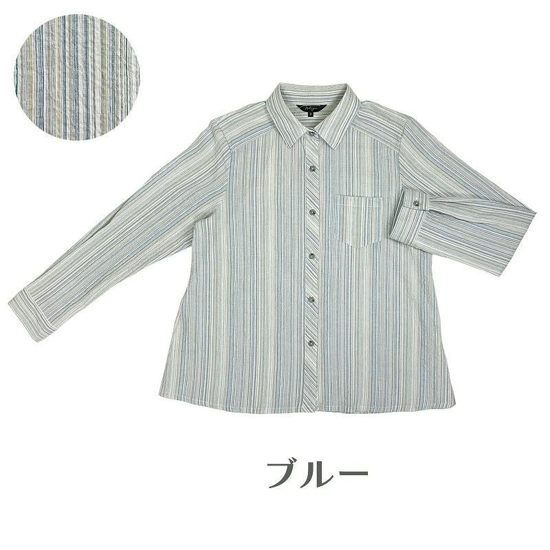 【婦人長袖ストライプ柄楊柳日よけシャツ M・L・LL】ds401402 綿99%