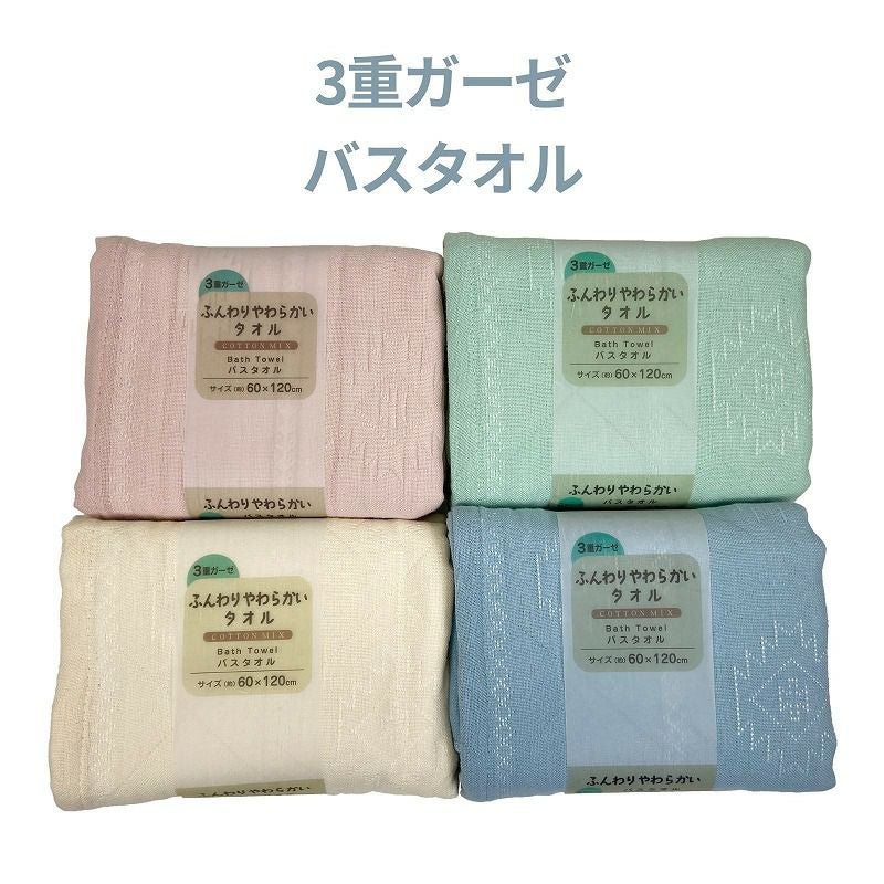 【ふんわりやわらかい3重ガーゼバスタオル 約60×120㎝】ds1400B