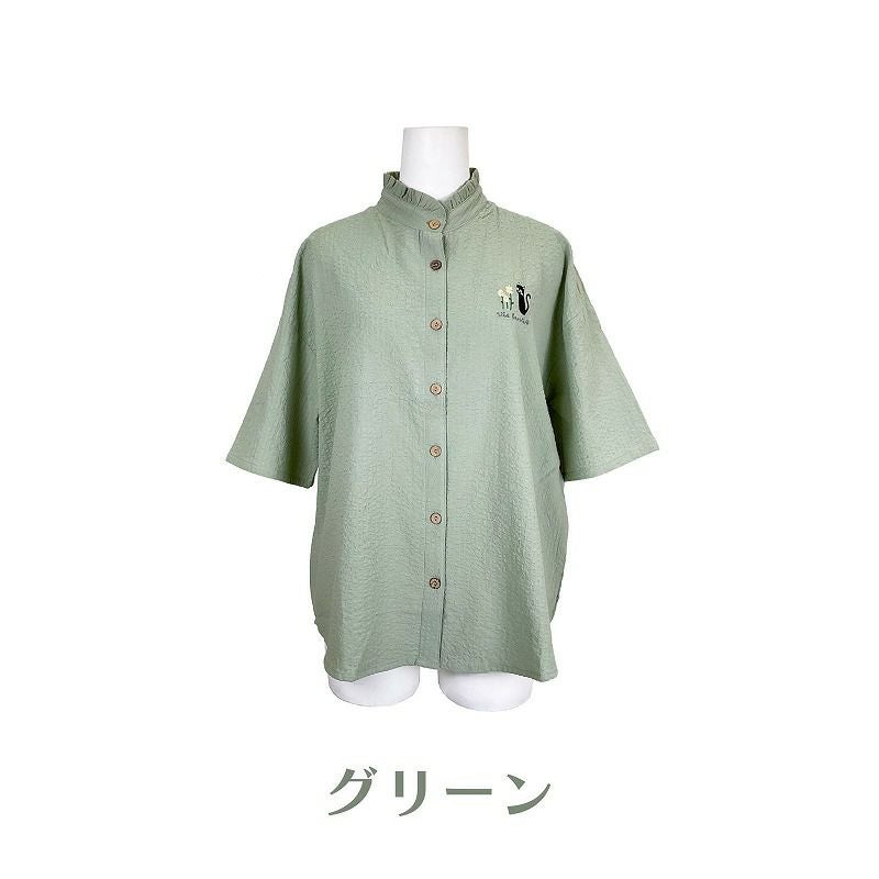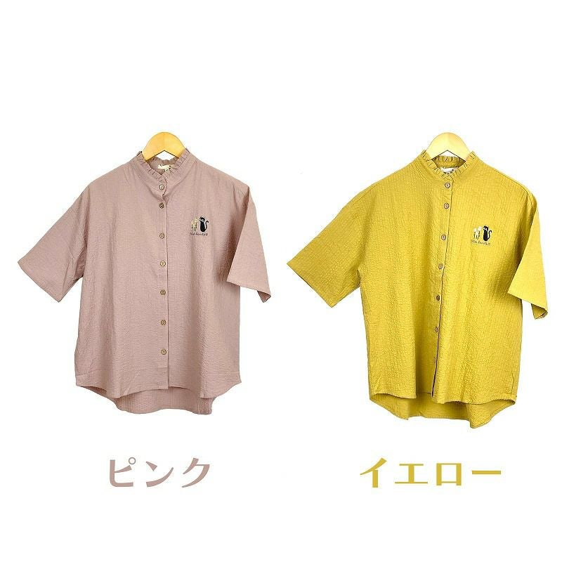 【婦人綿100%衿フリルシャツネコちゃんブラウス M・L】 ds491578