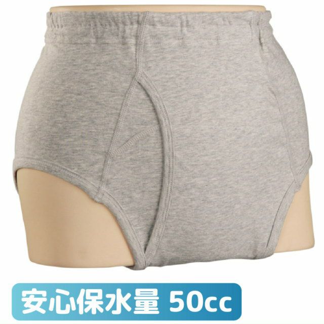旅行や長時間のお出かけにも安心、紳士用ケアパンツ。パッドを使用する際のズレを防止するポケットが付いています。水分を吸水布のみに閉じ込め、縫い目や縁からのしみ出しをしっかりブロックします。ソフトな吸水布を使用してますので、股部分のごわつきがありません。気になるニオイを吸収し分解する消臭加工付き。安心保水量は50ccです。※エンゼルでは外衣にしみださない保水量を【安心保水量】と表示しています。