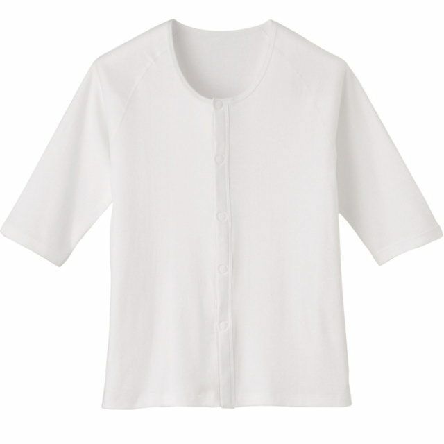 中厚ニットの丈夫な肌着。綿100%のやさしい肌ざわりです。着脱簡単なマジックテープ式。袖の長さは七分袖です。 日本エンゼル