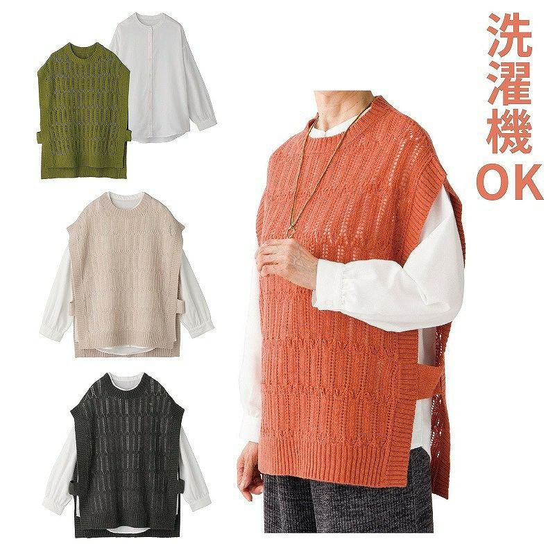 快適な日常生活をお過ごしいただけるためにお役立ていただける商品です着やすさとやさしい工夫のアイテムです【ゆったりスタイル】ゆったりしているけどきちんと感を合わせた若々しいスタイル!体型をカバーするので安心!ゆるふわな重ね着コーディネートでお洒落が決まります!アンサンブルだからこれだけでコーデが完成!ベストとブラウスは別々でも着られるのお洒落の幅が広がります!●品名/婦人ニットベストアンサンブル●色/グレージュ・オレンジ・グリーン・チャコール●サイズ/M-L●素材/ベスト:アクリル100%、ブラウス:ポリエステル65%・綿35%●生産国/バングラディシュ製●仕様/洗濯機OK ベスト・ブラウスセット 後ろ身頃長め●説明/【ゆったりスタイル】ゆったりしているけどきちんと感を合わせた若々しいスタイル!体型をカバーするので安心!ゆるふわな重ね着コーディネートでお洒落が決まります!アンサンブルだからこれだけでコーデが完成!ベストとブラウスは別々でも着られるのお洒落の幅が広がります!