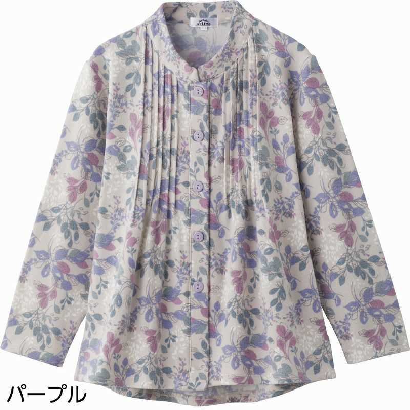 【婦人パンジー柄刺繍衿袖ゴムブラウス M~L】 A24-822223