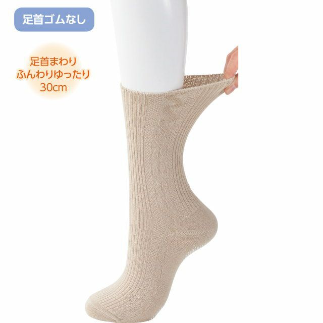 足首にゴムがなくてもずり落ちにくい設計。足裏にはすべり止め採用でフローリングでの歩行の転倒防止にもなります。56383