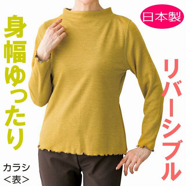 快適な日常生活をお過ごしいただけるためにお役立ていただける商品です【あなたにやさしいお洋服】着やすさとやさしい工夫がうれしい!機能性とお洒落を追求しました見た目はおしゃれなTシャツ。工夫と機能性でラクラク!着心地もよくておすすめです。【やさしいポイント】前・後ろ・裏・表のどちらでも着られて、確認の手間がいらず脱ぎ着が楽ラク。裏表で色も違うので、2通りの雰囲気を楽しめます。【身幅ゆったり】体を通しやすいゆったりとした身幅で、脱ぎ着がラクラク!脱ぎ着もしやすく、快適な着心地です。●品名/【婦人前後・裏表着られるあったかTシャツ M・L】 A1198645 婦人服 レディースファッション●色/カラシ・チェリー・パープル・ネイビー●サイズ/M・L●素材/アクリル81%・レーヨン14%・ナイロン5%●生産国/日本製●仕様/【あなたにやさしいお洋服】着やすさとやさしい工夫がうれしい!機能性とお洒落を追求しました見た目はおしゃれなTシャツ。工夫と機能性でラクラク!着心地もよくておすすめです。【やさしいポイント】前・後ろ・裏・表のどちらでも着られて、確認の手間がいらず脱ぎ着が楽ラク。裏表で色も違うので、2通りの雰囲気を楽しめます。●説明/ロイヤルサーモ 前後裏表リバーシブル 洗濯機OK 身幅ゆったり のびのび あったか