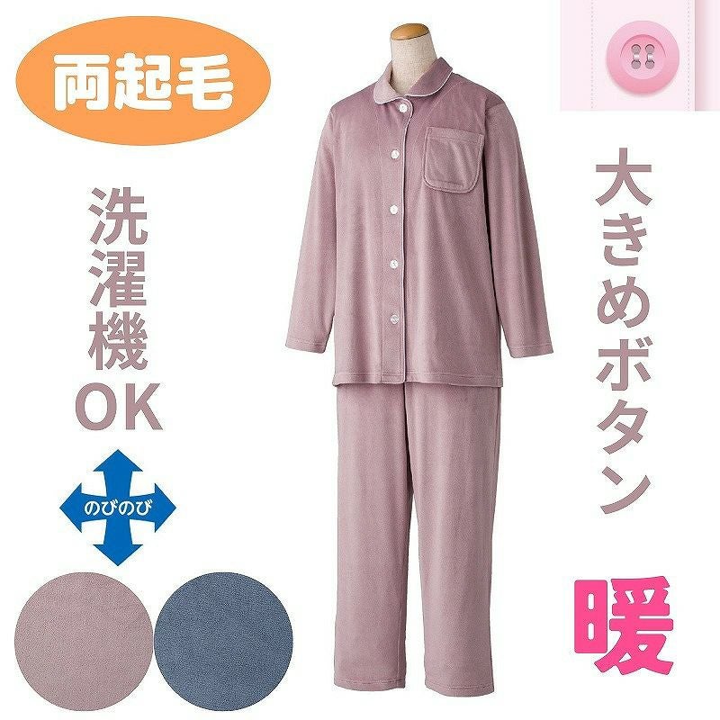 快適な日常生活をお過ごしいただけるためにお役立ていただける商品です着やすさとやさしい工夫のアイテムですまるで毛布に包まれているような暖かさで寒い冬に最適。生地もストレッチ性が高く着心地最適。毛布のような滑らかな風合いと高い収縮性で快適な着用感。着脱カンタン!様々な工夫脱ぎ着しやすい工夫を凝らした優しい設計です。つかみやすい大きめボタンで手の力が弱くてもボタンの留め外しがラクラクです。一般のボタンに比べてつかみやすい大きめボタンを採用。この違いがご自身での着脱も簡単にしてくれます。●品名/大きめボタンベロアパジャマ●色/ピンク・ブルー●サイズ/M・L●素材/ポリエステル95%・ポリウレタン5%●生産国/中国製●仕様/ベロア 洗濯機OK(ネット使用) 大きめボタン のびのび 秋冬用 両起毛●説明/まるで毛布に包まれているような暖かさで寒い冬に最適。生地もストレッチ性が高く着心地最適。毛布のような滑らかな風合いと高い収縮性で快適な着用感。