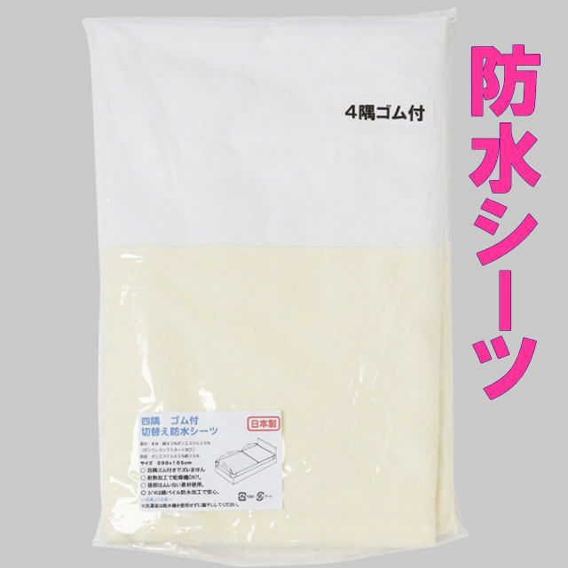 快適な日常生活をお過ごしいただけるためにお役立ていただける商品です四隅ゴム付でズレません。3/4は綿パイル防水加工です。耐熱加工で乾燥機OK。頭部はムレない素材使用。●品名/四隅ゴム付切り替え防水シーツ●色/クリーム(切り替え上部白)●サイズ/105X200㎝●材質/本体:綿80%、ポリエステル20%(ポリウレタンラミネート加工、側面:ポリエステル65%、綿35%●生産国/日本製●仕様・説明/介護衣料:防水シーツ●説明/四隅ゴム付でズレません。3/4は綿パイル防水加工です。耐熱加工で乾燥機OK。頭部はムレない素材使用。