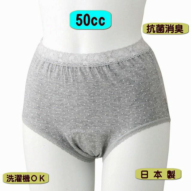 ◆ ウエストレースと水玉がおしゃれ ◆50ccまでの尿漏れをキャッチ。やさしい水玉プリントとウエストレースが人気。ストレッチ素材で快適なはき心地です。【中失禁】長時間の外出、ご旅行などで少し不安な方におすすめのタイプです。安心快適吸収帯50ccまでの尿漏れをキャッチ。素早く吸収し、外へ発散するので、べたつかずいつもさらさら。吸水帯一体型