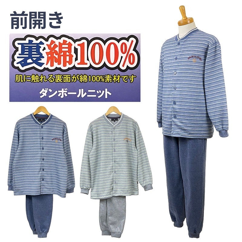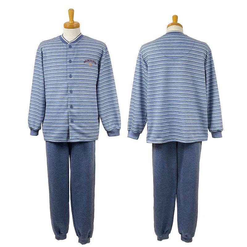 無地もご用意しております。紳士前開きスエット上下(裏・綿100%)無地●【紳士前開きスエット上下(裏・綿100%)無地】ds46281はこちら快適な日常生活をお過ごしいただけるためにお役立ていただける商品ですリハビリ、入院時や着せ替えにもとっても便利な前開きのスエット上下です。ゆったり過ごせるリラックスウエアです。胸の刺繍は若干変わる場合がございます。●品名/紳士前開きスエット上下(裏・綿100%)ボーダー柄●色/ブルー・グレー●サイズ/M・L●材質/【ブルー】本体:ポリエステル70%、綿30% リブ:ポリエステル62%、綿33%、ポリウレタン5% ラインリブ:ポリエステル70%、綿30%【グレー】本体:ポリエステル100% リブ:ポリエステル95%、ポリウレタン5% ラインリブ:ポリエステル95%、綿5%●生産国/中国製●仕様・説明/リハビリ、入院時や着せ替えにもとっても便利な前開きのスエット上下です。ウエストゴムの入れ替え口があるので、ゴムの入れ替え可能です。ズボンの前開き(ボタン仕様)・後ろポケットあり裏が綿100%で着心地抜群です。裏起毛ではないので施設では、通年使用できます。●説明/ゆったり過ごせるリラックスウエアです。