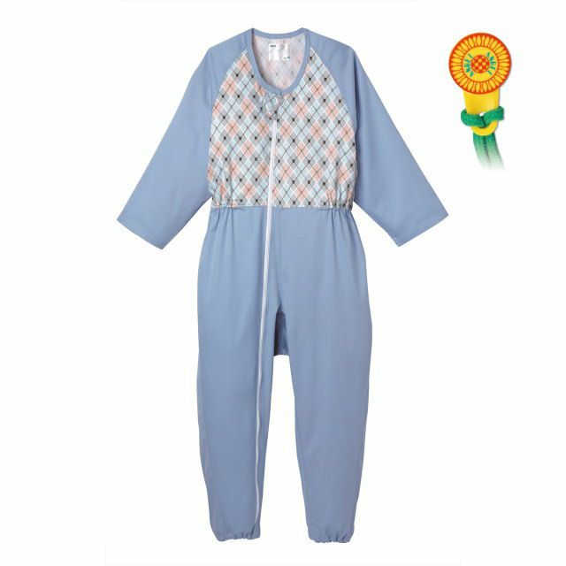 ・マグネットでワンタッチ開閉!不潔行為を防ぎますコットンのやさしい風合いを活かした肌当たりのよいコンビネーション。マグネット(ひまわりオープン)を当てるだけで簡単に解除できるロックボタン付きで、おむついじりなどを防止します。胸ファスナー、股ファスナ―付のフルオープン仕様で、寝たきりの方でも無理なく着脱、おむつ替えができます。