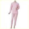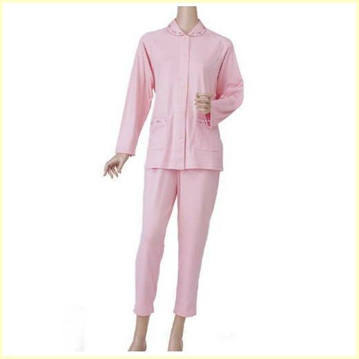 刺しゅうをほどこしたおしゃれなデザイン。===上着===◎ボタンの代わりに丸型マジック。(飾りボタン付)◎着脱が楽なラグラン袖で、袖口も広めです。◎両脇の縫い代は肌に当たっても痛くないように工夫されています。===ズボン===◎調整が簡単にできる、ウエスト調整ゴム。◎足口ゴム入り。※不要な時は抜くことができます。◎ズボンは通常タイプ(両脇ファスナーなし)