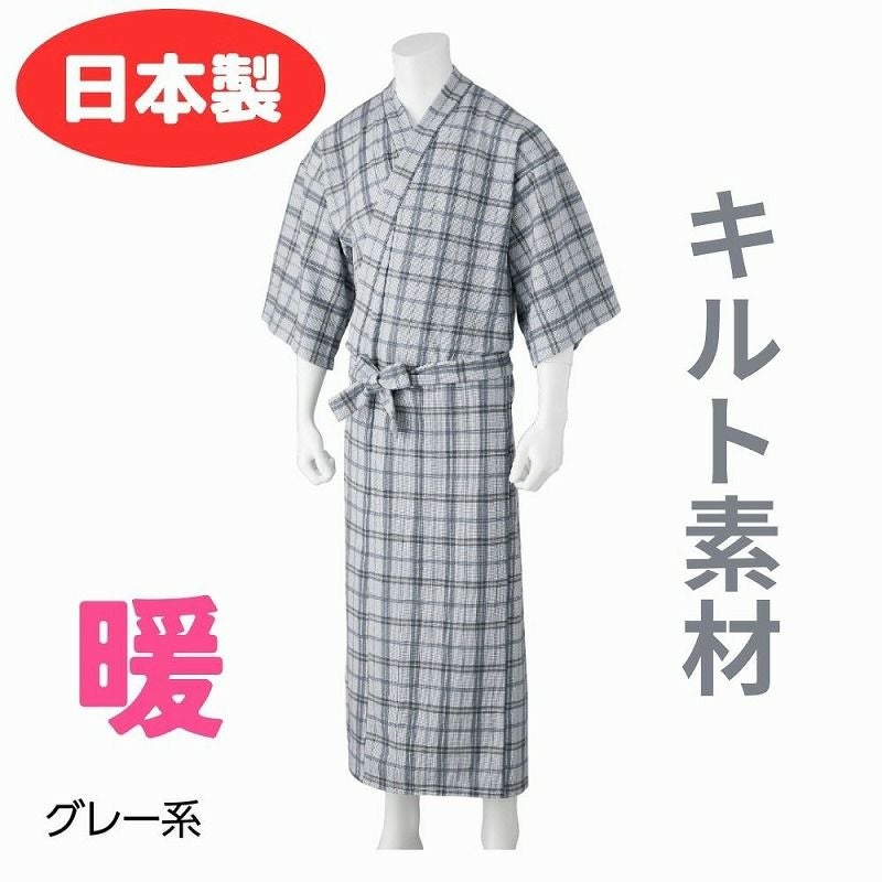 快適な日常生活をお過ごしいただけるためにお役立ていただける商品です着やすさとやさしい工夫のアイテムです3層構造のキルト素材で温かくなった空気を逃さず保温性抜群です。入院時や着せ替えにも便利なゆったりしたキルトねまきです。●品名/紳士キルトねまき 秋冬用●色/ブルー系・グレー系●サイズ/M・L●素材/表綿100%、中綿ポリエステル100%、裏綿75%・ポリエステル25%●生産国/日本製●仕様/※適宜、上のような柄から商品をお届けします。柄はお選びいただくことはできません。 洗濯機OK 日本製 秋冬用●説明/3層構造のキルト素材で温かくなった空気を逃さず保温性抜群です。入院時や着せ替えにも便利なゆったりしたキルトねまきです。
