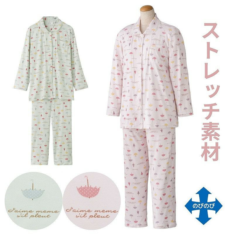 快適な日常生活をお過ごしいただけるためにお役立ていただける商品です着やすさとやさしい工夫のアイテムですのびのび素材を使用したパジャマで快適な着用感なめらかな風合いで心地よい肌触りやさしいパジャマ!様々な工夫【ストレッチパジャマ】親切設計!のびのび素材で着脱簡単。着脱がラクなだけでなく寝返もラクにできます。のびのび素材だから腕が通しやすい!●品名/婦人のびのびストレッチパジャマ●色/ピンク・ミント●サイズ/M・L●素材/ポリエステル95%・ポリウレタン5%●生産国/中国製●仕様/洗濯機OK(ネット使用) のびのび(縦・横) ※柄は若干変更になる場合もございます。●説明/のびのび素材を使用したパジャマで快適な着用感なめらかな風合いで心地よい肌触り