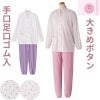 快適な日常生活をお過ごしいただけるためにお役立ていただける商品です着やすさとやさしい工夫のアイテムです軽くて柔らかな天竺素材を使用したおしゃれな大きめボタン天竺パジャマ。春夏にぴったりのさらっとした着心地で、ゆったり快適に休めます♪大きめボタンで着脱しやすく、毎日の着替えもスムーズ。手口・足口ゴム入りでずれにくく安心、名前記入欄付きで施設利用にも便利。洗濯機OKで清潔に保てます。着脱カンタン!様々な工夫脱ぎ着しやすい工夫を凝らした優しい設計です。つかみやすい大きめボタンで手の力が弱くてもボタンの留め外しがラクラクです。一般のボタンに比べてつかみやすい大きめボタンを採用。この違いがご自身での着脱も簡単にしてくれます。【手口・足口ゴム入り】手口と足口にゴム入りなので、めくれ上がりにくい設計です。名前記入欄付で間違い防止名前が書けるタグ付きなので、入院や施設入居時など、脱いだ後や洗濯後も他人のものと間違うことがありません。●品名/大きめボタン天竺パジャマ●色/ピンク・パープル●サイズ/S・M・L・LL●素材/ポリエステル85%・綿15%●生産国/中国製●仕様/洗濯機OK(ネット使用) 大きめボタン 名前記入欄付 手口・足口ゴム入り 天竺 ※柄は若干変更になる場合もございます。●説明/軽くて柔らかな天竺素材を使用したおしゃれな大きめボタン天竺パジャマ。春夏にぴったりのさらっとした着心地で、ゆったり快適に休めます♪大きめボタンで着脱しやすく、毎日の着替えもスムーズ。手口・足口ゴム入りでずれにくく安心、名前記入欄付きで施設利用にも便利。洗濯機OKで清潔に保てます。