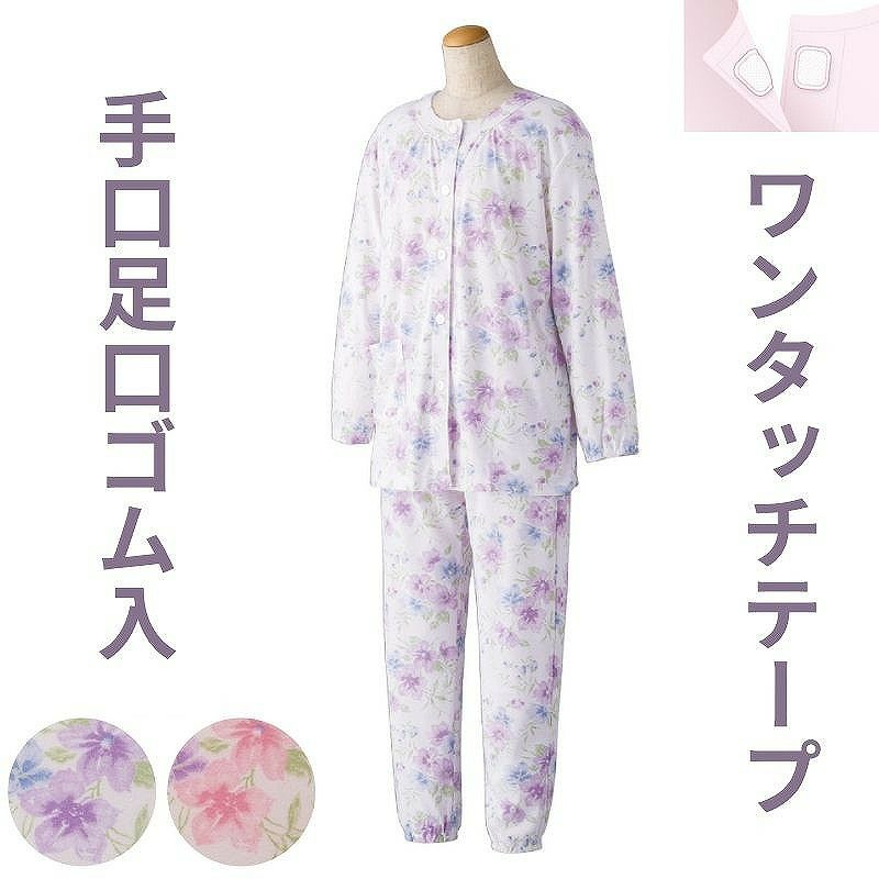 快適な日常生活をお過ごしいただけるためにお役立ていただける商品です着やすさとやさしい工夫のアイテムです【ワンタッチテープ】ボタンが留めにくい方は前合わせのワンタッチテープ仕様で、着替えがスムーズに着替えや検温時にはさっと開閉できます。 飾りボタン付で見た目は普通の洋服と変わりませんなめらかな肌触りのスムース素材着脱カンタン!様々な工夫【ワンタッチテープ】ボタンが留めにくい方は前合わせのワンタッチテープ仕様で、着替えがスムーズにワンタッチ肌着で前が開くので着脱が楽です開け閉めがさっとできるから着替えがラクラク!着やすく脱ぎやすい親切設計!前開きなので一人でも簡単につけることができます【手口・足口ゴム入り】手口と足口にゴム入りなので、めくれ上がりにくい設計です。 マジックテープ商品に関するご注意洗濯時にはゴミのなどの付着の原因になりますのでテープを張り合わせてください。●品名/婦人ワンタッチパジャマ 通年用●色/ピンク・パープル●サイズ/M・L●素材/ポリエステル80%・綿20%●生産国/中国製●仕様/洗濯機OK ワンタッチテープ 手口・足口ゴム入り スムース ※柄は若干変更になる場合もございます。●説明/【ワンタッチテープ】ボタンが留めにくい方は前合わせのワンタッチテープ仕様で、着替えがスムーズに着替えや検温時にはさっと開閉できます。 飾りボタン付で見た目は普通の洋服と変わりませんなめらかな肌触りのスムース素材