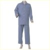 チェックパイピングのおしゃれなデザイン。===上着===◎ボタンの代わりに丸型マジック。(飾りボタン付)◎着脱が楽なラグラン袖で、袖口も広めです。◎両脇の縫い代は肌に当たっても痛くないように工夫されています。===ズボン===◎調整が簡単にできる、ウエスト調整ゴム。◎足口ゴム入り。※不要な時は抜くことができます。◎ズボンは通常タイプ(両脇ファスナーなし)