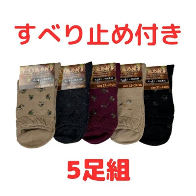 【婦人綿混花柄すべり止めソックス 5足組 22-24cm】 5p3000のレビューを書く