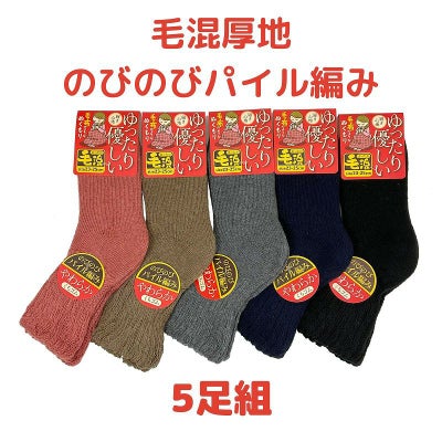 【婦人毛混厚地パイルソックス5足組 23-25㎝】 5p3016のレビューを書く