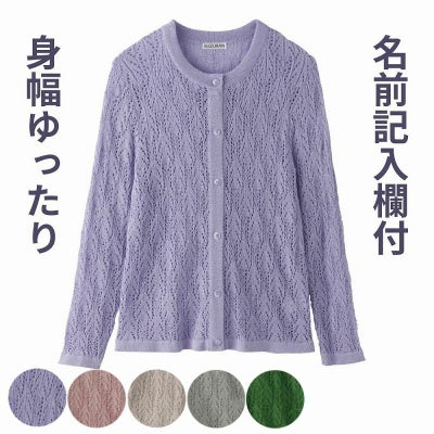 【婦人透かし柄丸首カーディガン M-L・LL】 A24-821267のレビューを書く
