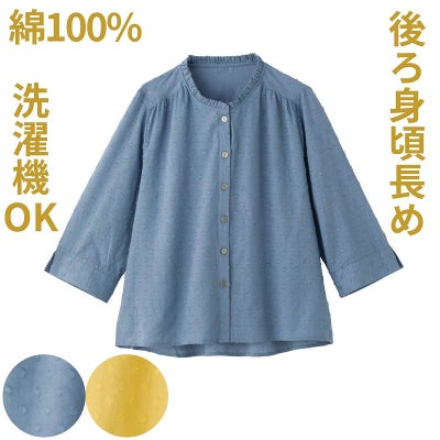【婦人7分袖綿100%フリルネックブラウスM・L】 A24-822186のレビューを書く