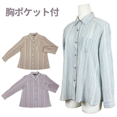 【婦人長袖ストライプ柄楊柳日よけシャツ M・L・LL】ds401402 綿99%のレビューを書く