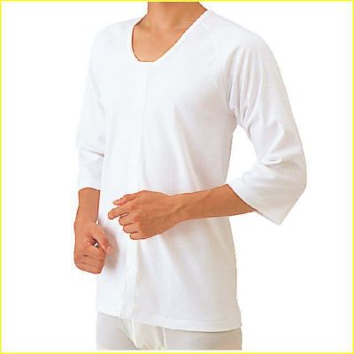 【前開き5分袖(ラグラン袖)高級エジプト綿 無蛍光 紳士用マジック式LL】kb2LL km 神戸生絲 №2 マジックテープ 前開きのレビューを書く