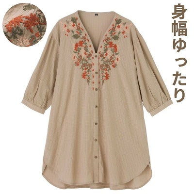 【婦人7分袖前身頃刺繍ロングブラウス ベージュM・L・LL】 wA18-821731のレビューを書く