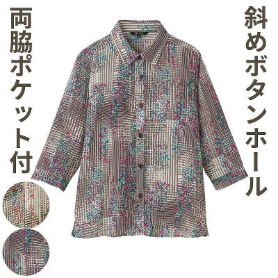 【婦人7分袖斜めボタンホールブラウス オフ×ブラックLのみ】 wA18-821766のレビューを書く