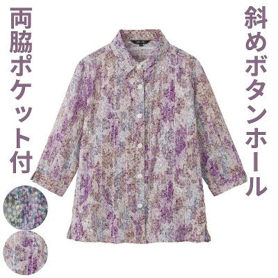 【婦人7分袖斜めボタンホールブラウス パープルLのみ】 wA18-821767zのレビューを書く