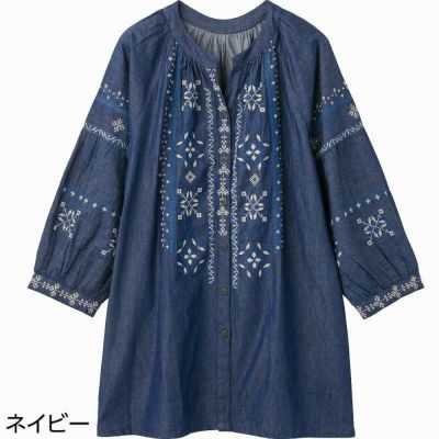 【婦人7分袖デニム刺繍前開きTブラウス ネイビーLLのみ】 wzA18-821246zのレビューを書く